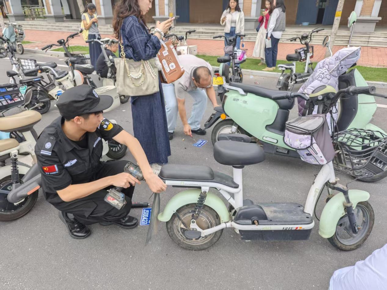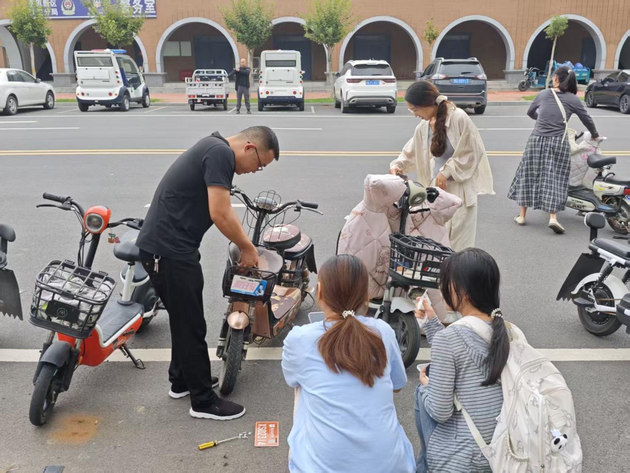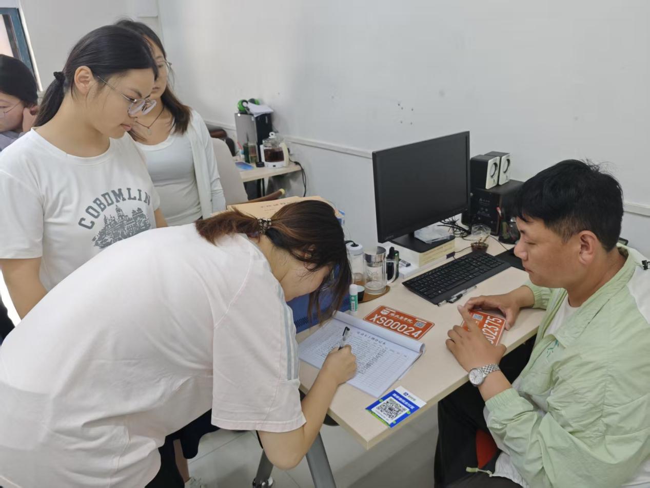 本次办理工作将从915日持续到101日,在保卫科设立专门办理点。后勤处安排了多名工作人员耐心解答师生咨询,细致审核办理材料,并高效完成信息登记、牌照发放与安装等一系列流程。期间,工作人员还为师生员工解答新规实施相关疑问,进一步就师生员工在校内使用电动自行车开展交通、消防安全宣传教育。