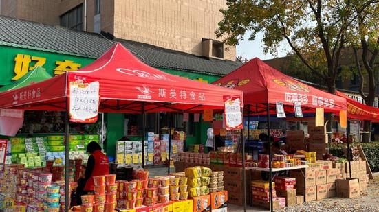 活动期间,商品琳琅满目,涵盖了日用百货、方便面、牛奶、水果蛋糕以及深受学生欢迎的零食饮品等。